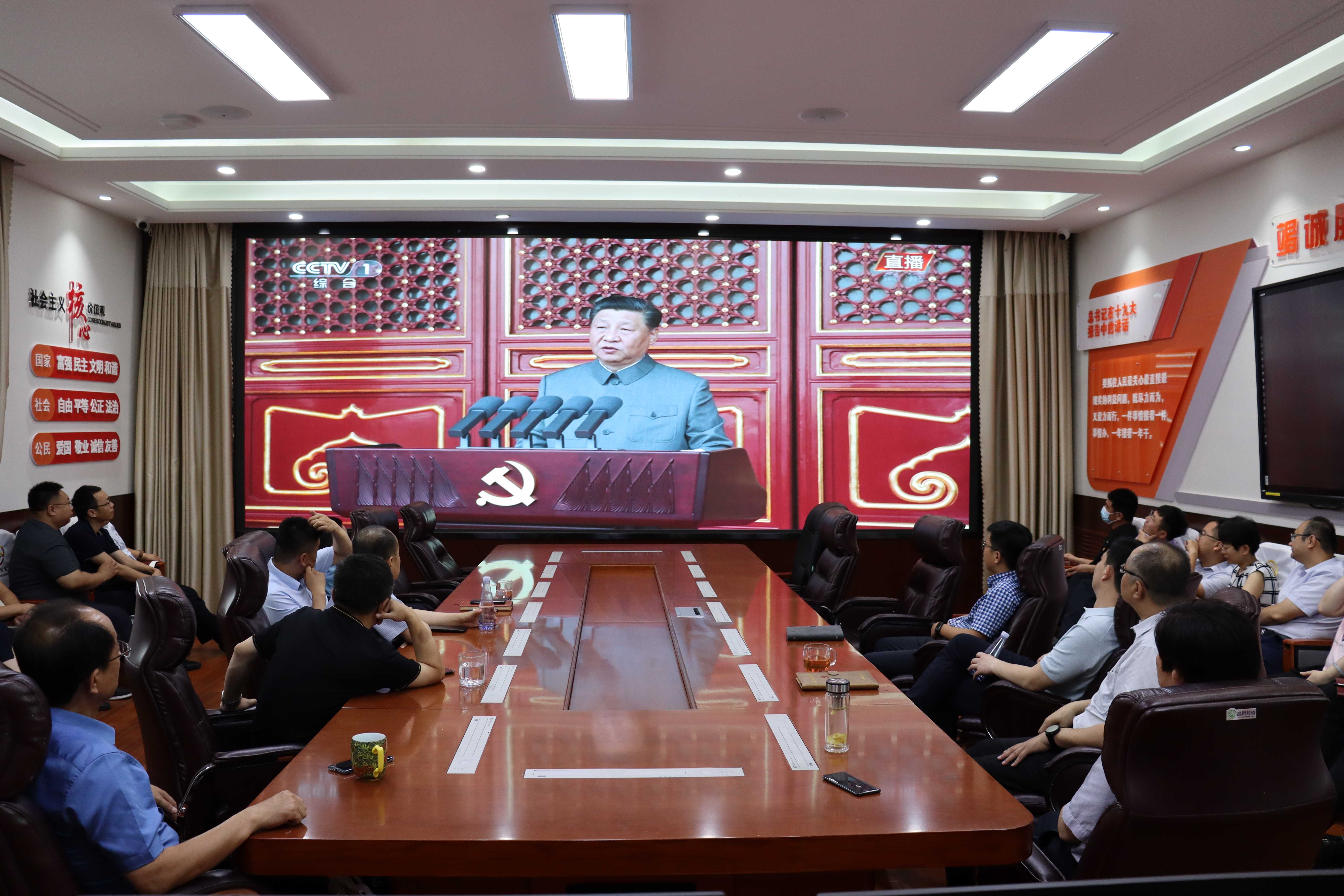 7月1日上午8時,慶祝中國共產(chǎn)黨成立100周年大會在北京天安門廣場隆重舉行,中共中央總書記、國家主席、中央軍委主席習(xí)近平發(fā)表重要講話。市財金公司及各子公司組織干部職工集中觀看大會直播。