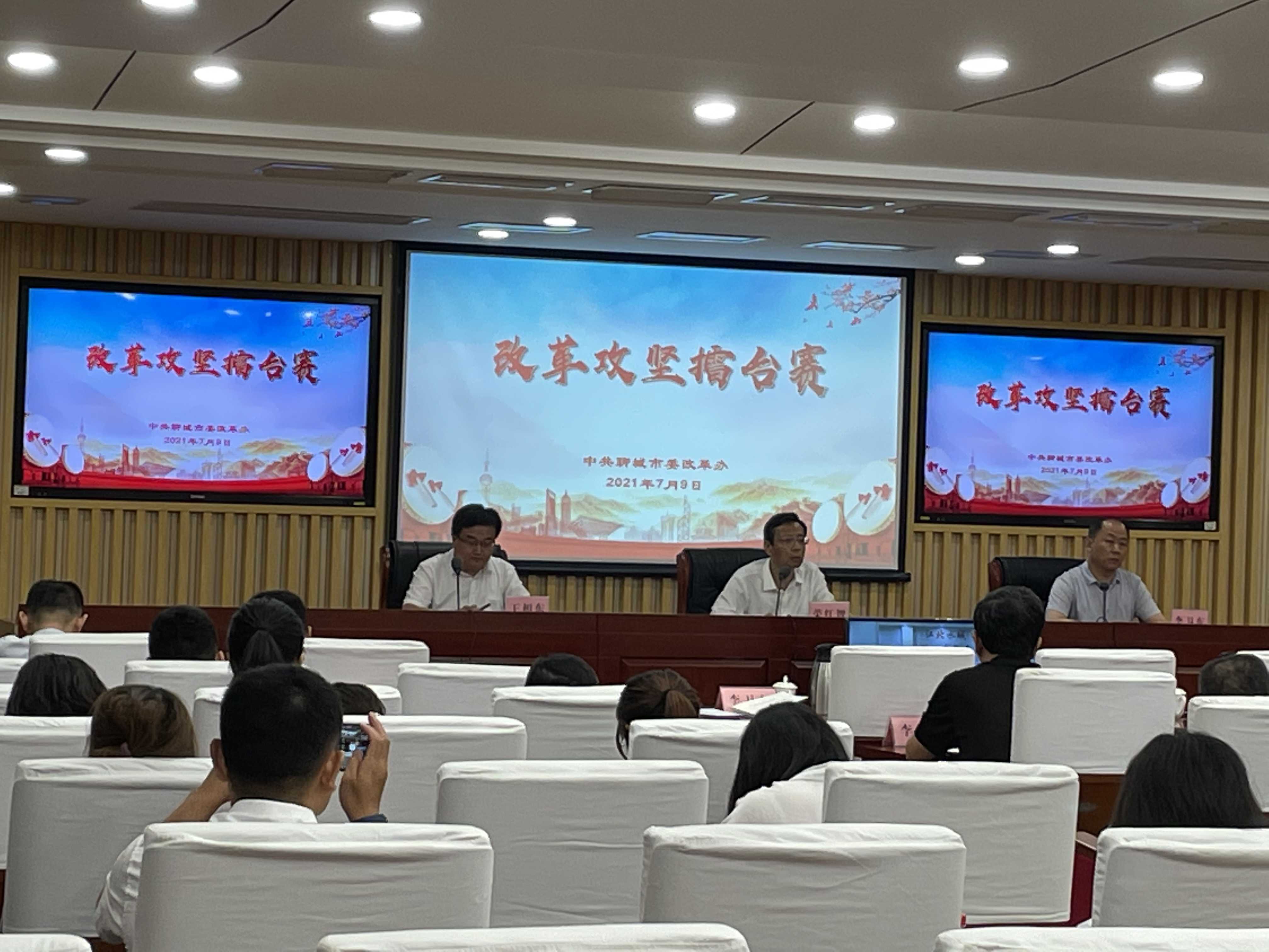 7月9日下午,中共聊城市委改革辦開展了“改革攻堅擂臺賽”,在全市68個改革創(chuàng)新案例中選取10個典型案例匯報展示。市委常委、秘書長、改革辦主任榮紅智,省委改革辦主任李衛(wèi)東,聊城市委副秘書長、政研室主任、改革辦副主任王相東,市國資委黨委委員、副主任李樹新及市直有關部門分管負責同志參會,各縣(市、區(qū))設視頻分會場。