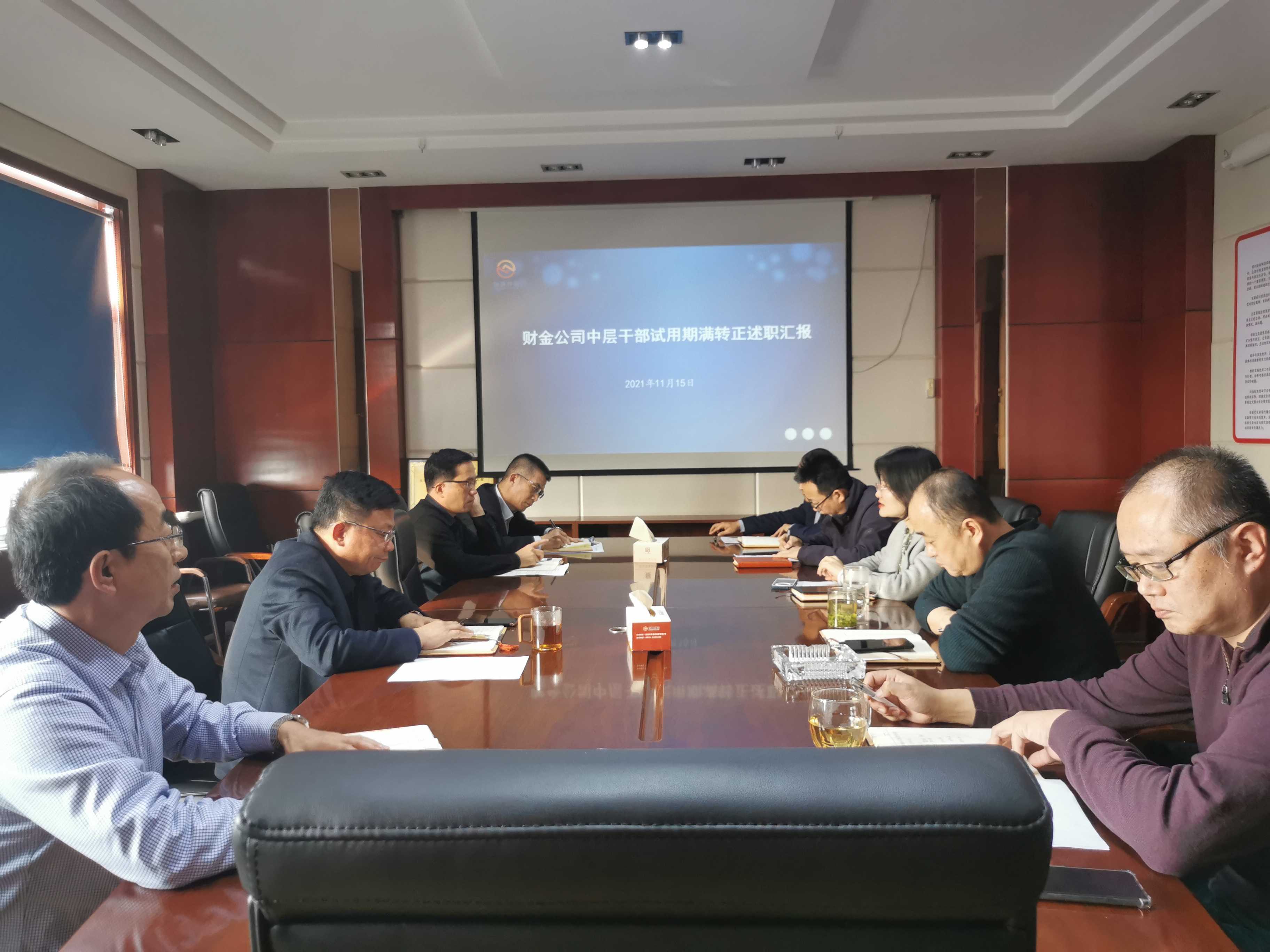 11月15日上午,市財金公司組織召開中層干部試用期滿轉正述職匯報會。會議由市財金公司黨委副書記、董事、總經(jīng)理于雪格主持,公司黨委成員、各擬轉正中層干部分管領導及總經(jīng)理助理、人力資源管理部經(jīng)理參加會議。