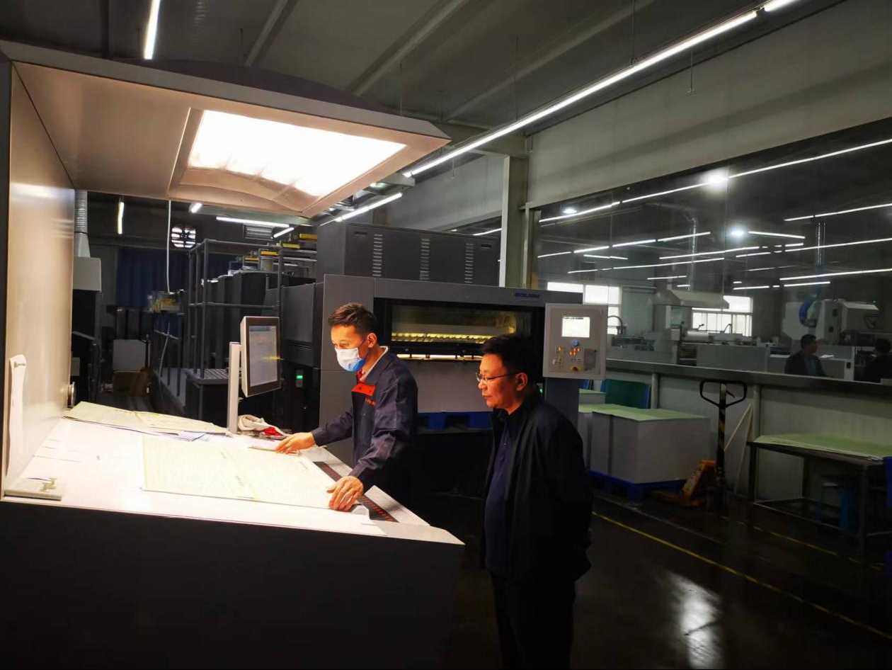 肥城新華印刷有限公司負(fù)責(zé)人對考察組的到訪表示熱烈歡迎,并圍繞印刷流程、印刷工藝、印刷設(shè)備及設(shè)備智能化等方面做了詳細(xì)介紹??疾旖M一行通過調(diào)研對建立數(shù)字化印刷廠區(qū)的建設(shè),以及國產(chǎn)化的環(huán)保印刷設(shè)備有了進(jìn)一步的了解。