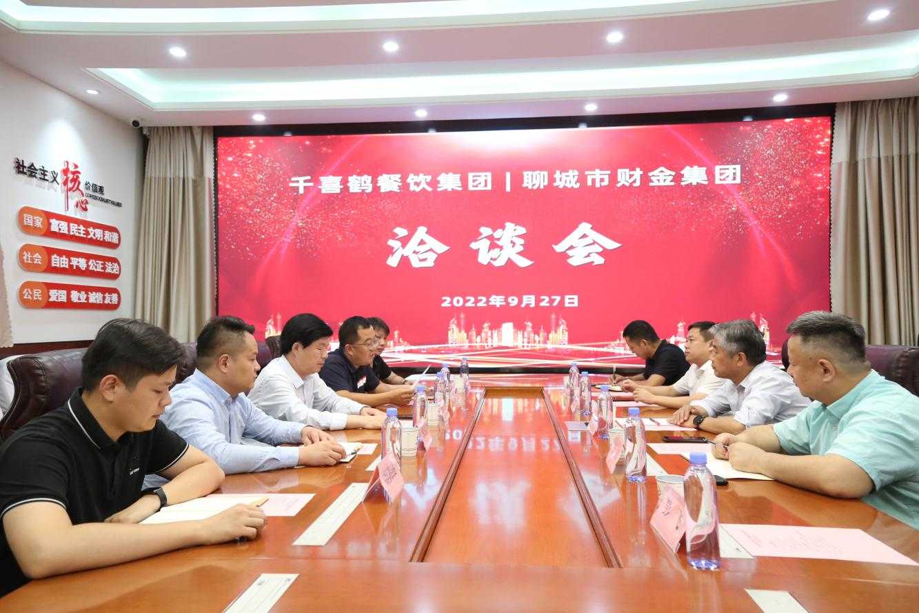 9月27日下午,千喜鶴餐飲集團(tuán)總裁李中明、華東區(qū)總裁魏武等人一行受邀來到市財(cái)金集團(tuán),雙方召開洽談會(huì),共同就聊城市餐飲服務(wù)項(xiàng)目合作事宜進(jìn)行交流對(duì)接。市財(cái)金集團(tuán)黨委書記、董事長(zhǎng)張繼堯,董事會(huì)秘書、總經(jīng)理助理、財(cái)金城市發(fā)展公司董事長(zhǎng)王躍及有關(guān)負(fù)責(zé)人出席會(huì)議。